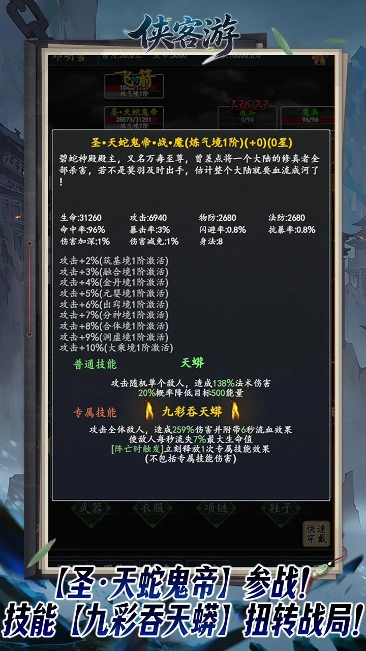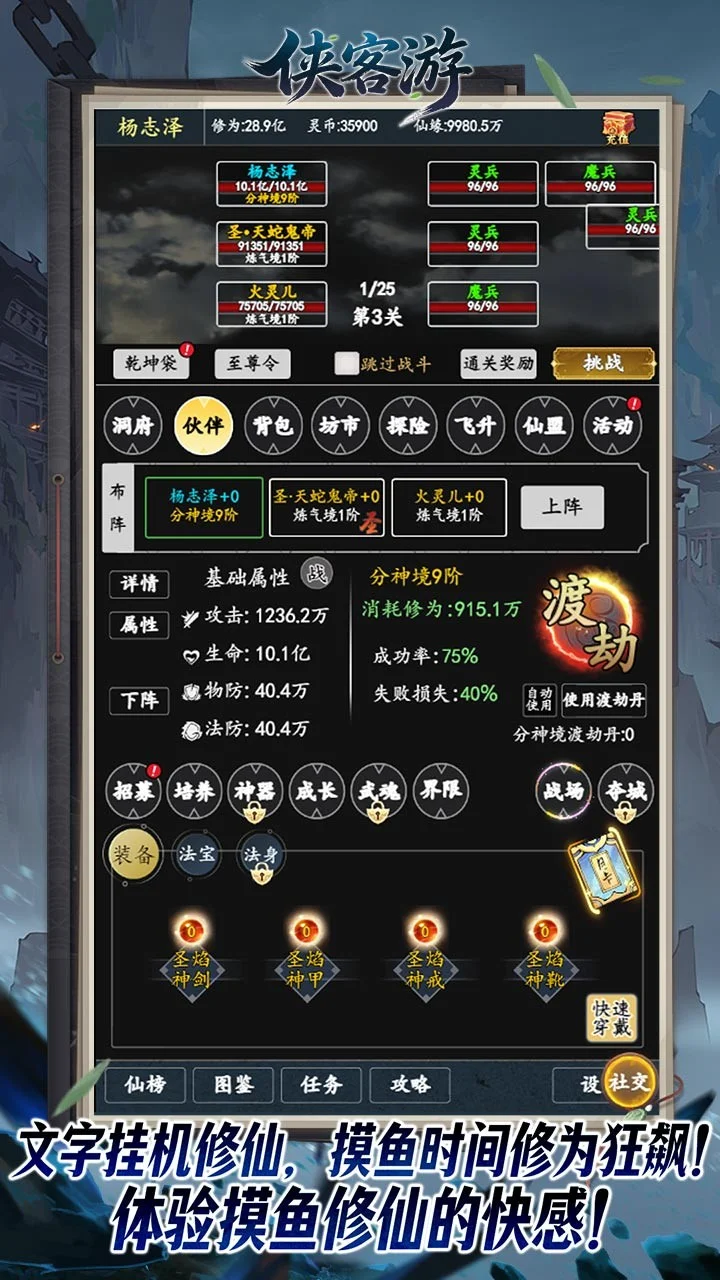 《侠客游(挂机文字0.05折免费版)》——挂机躺赢,开局即巅峰! 还在为开局选什么角色、刷什么装备发愁?新版本直接帮你省去所有烦恼!登录即送两大金色传说伙伴、三件金色至尊法宝,搭配海量开局资源,你的无敌仙途,从这里开始!