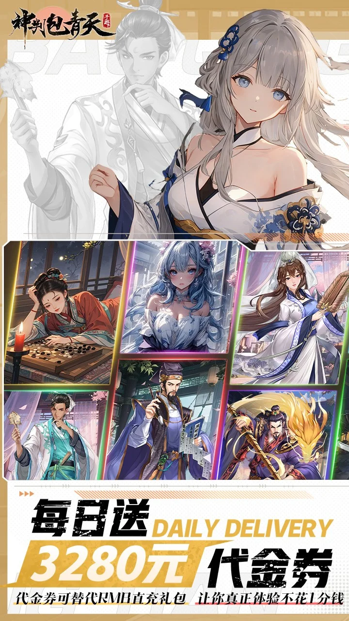 《神判包青天0.1》是一款特别经典的角色扮演类以宫廷体验为原型的官场手游游戏,玩家在这里将扮演包青天,跟随故事剧情微服出访,体察民情,并且能够秉公办理案件,利用自己的聪明才智寻找更多的线索,破获更多的案件惩奸除恶,铁面无私,宫廷斗争美女相伴自由行,多样挑战无尽美女在身边;绝世美女相伴去组队,经营资源获得更多的财富;萌萌时装等你切换,自由模式快乐无限,新官走马上任,英雄豪杰与你联合,尽情体验破案给我们带来的乐趣。