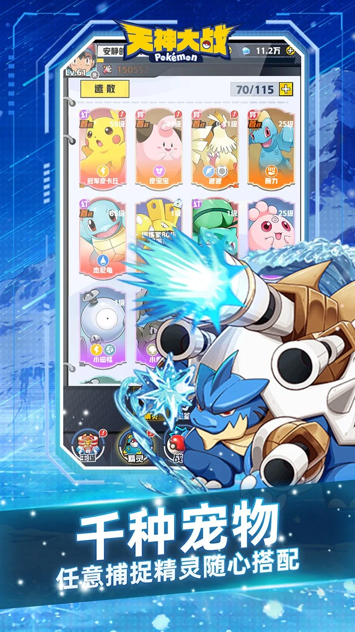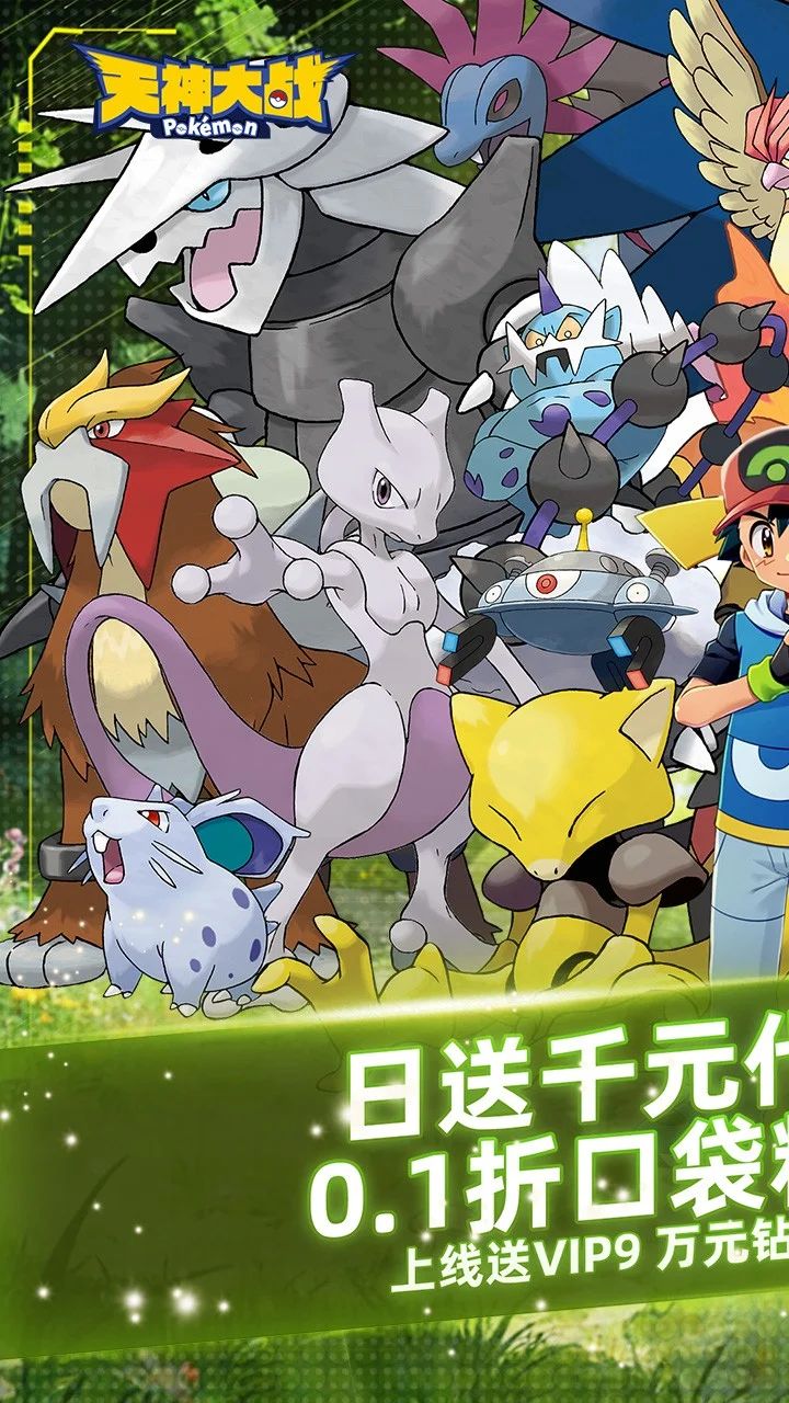 《天神大战(0.1折日送千元代金免费版)》集齐了宝可梦全体小精灵,上线即送VIP9特权、百抽精灵球、万元钻石,每日登录再领两千元直充代金券,直充海量钻石礼包。精灵球轻松捕捉全体神兽,全服限定结缘神兽风王。卡牌挂机解放双手,轻松躺赢,快来回味童年快乐!