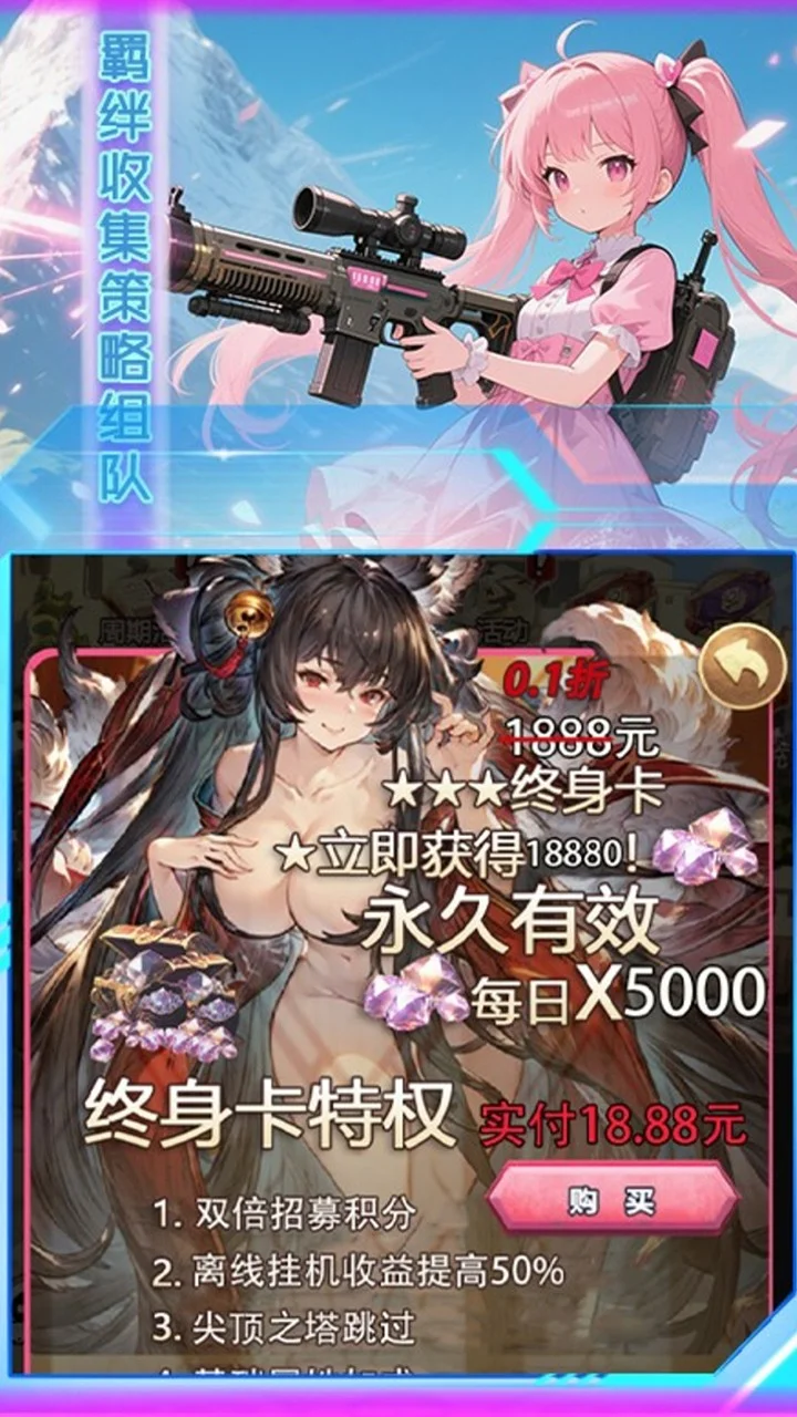 一款主打角色羁绊收集+策略组队的二次元卡牌手游,画风是清新治愈的日系二次元风格~游戏里设计了超多高颜值角色,每个角色都有明确的定位(防御/输出/辅助/控制), 你可以根据不同的“羁绊组合”来收集对应的角色,二次元颜值卡池开冲!
