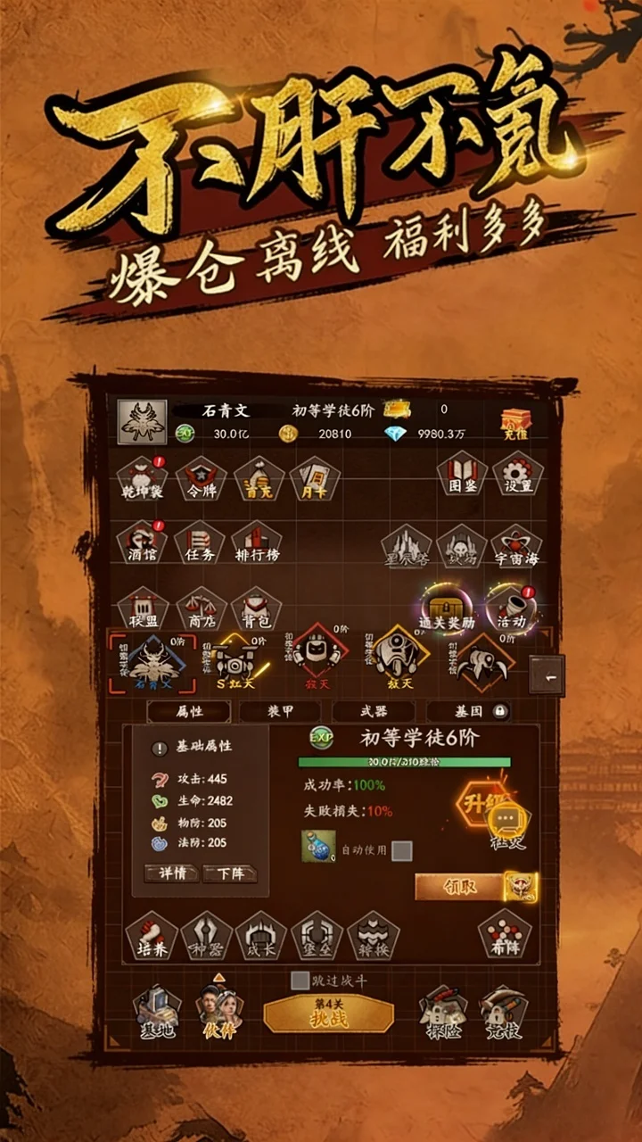 不同于传统手游繁杂画面,它专注文字力量,让玩家摆脱视觉干扰,专注剧情与成长,勾勒专属修仙江湖。玩法上兼顾休闲与策略,核心为放置挂机模式,离线也能积累修为、获取资源,解放双手,适配忙碌玩家。同时融入豪华副本与半沙盒自由历练玩法,既可闯关炼体,也能探索寻缘,为挂机玩法增添微操与探索乐趣。角色与阵容搭配是一大亮点,游戏提供丰富角色与职业,涵盖多个人种族群,各角色属性技能独特、相辅相成。玩家可自由搭配阵容,无固定最优套路,既能展现策略乐趣,也能适配不同玩法偏好。