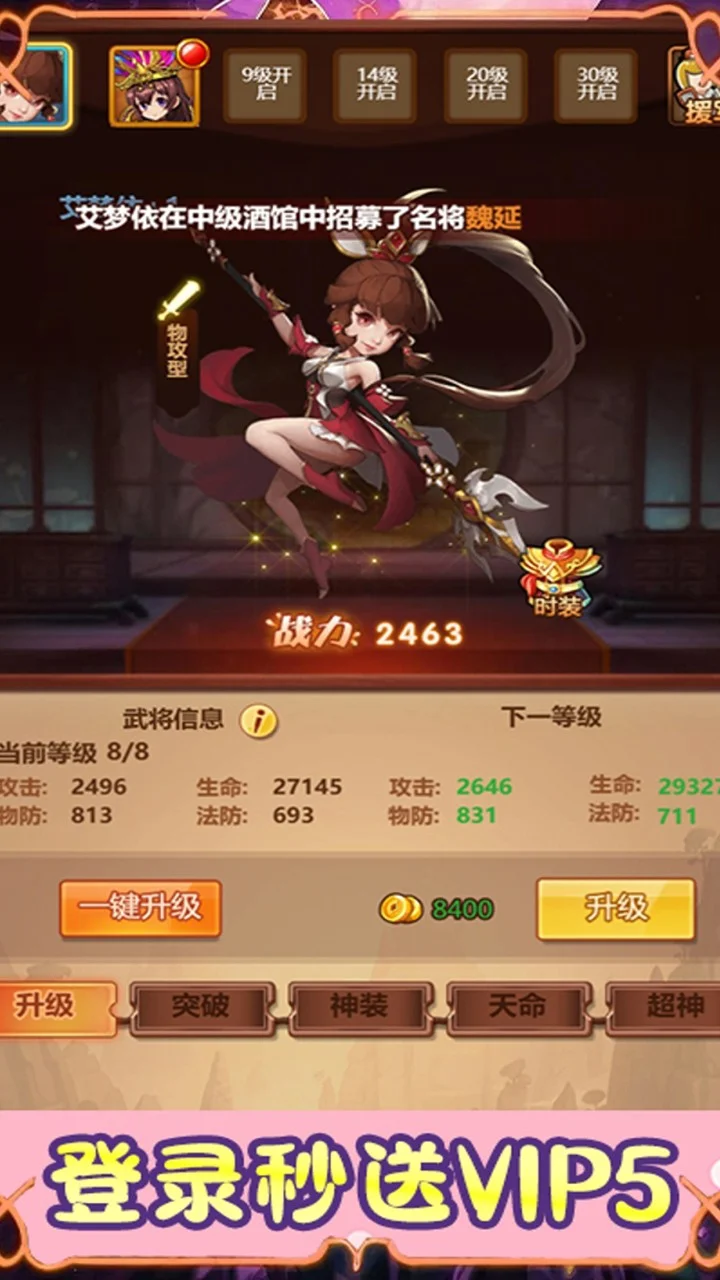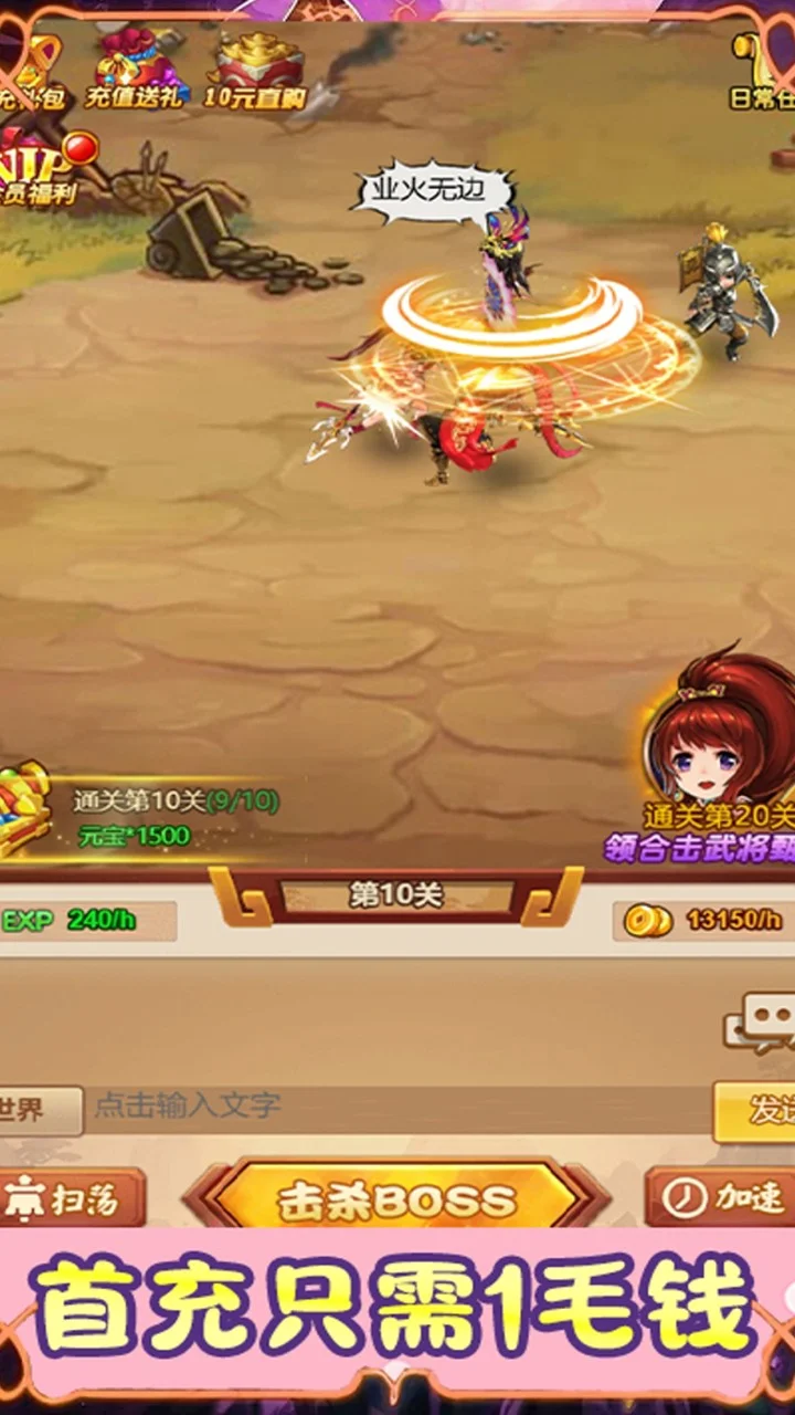 在游戏中,玩家将扮演一位三国时代的统帅,通过收集各种三国历史中的名将卡牌,建立自己的战队,征战沙场,逐步壮大自 己的势力。游戏的核心玩法是挂机,玩家无需长时间在线操作,只需设置好卡牌阵容和战斗策略,系统会自动进行战斗和资源收集。玩家可以根据自己的喜好和策略需求来选择 卡牌组合和培养方向,以应对各种战斗挑战。除了挂机战斗外,游戏中还有丰富的副本、任务和活动等内容,玩家可以通过挑战这些内容来获取更多的资源和奖励,提升自己的 实力和势力。此外,玩家还可以加入联盟,与其他玩家合作,共同征战天下。游戏融合了三国历史题材和卡牌挂机玩法,为玩家提供了轻松愉快的游戏体验,适合那些喜欢三国