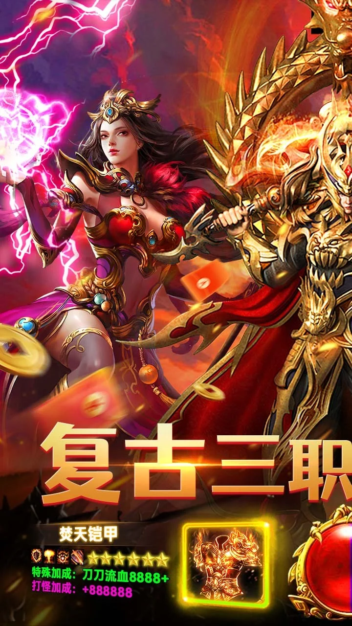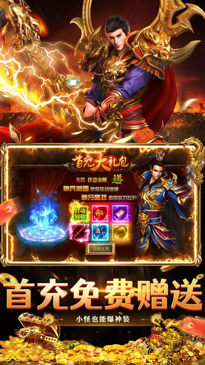 一款具有复古品质的三职业复古合击传奇游戏,内置三折充值系统;创角送大量元宝和材料;每日登录就送648真充,首充免费激活;本服所有的装备时装和材料均能掉落,快来与兄弟一起重聚热血,享受PK自由,让你尽情体验不一样的复古传奇战斗。