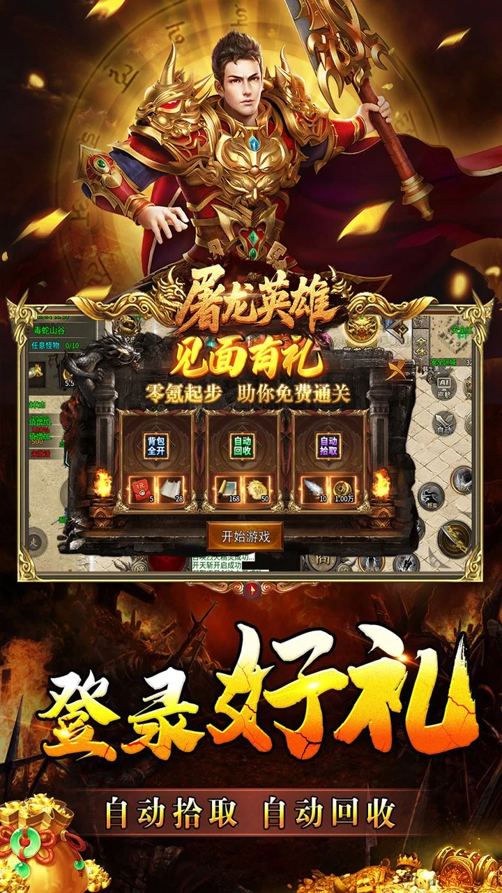 重回传奇,再战沙城。上线即送起步好礼:自动拾取、自动回收、背包全开等,助力开荒通关。跟随主线任务走,配合屠魔悬赏、寻龙盘玩法,快速提升战力,主打一个越战越猛、越战越强!!!