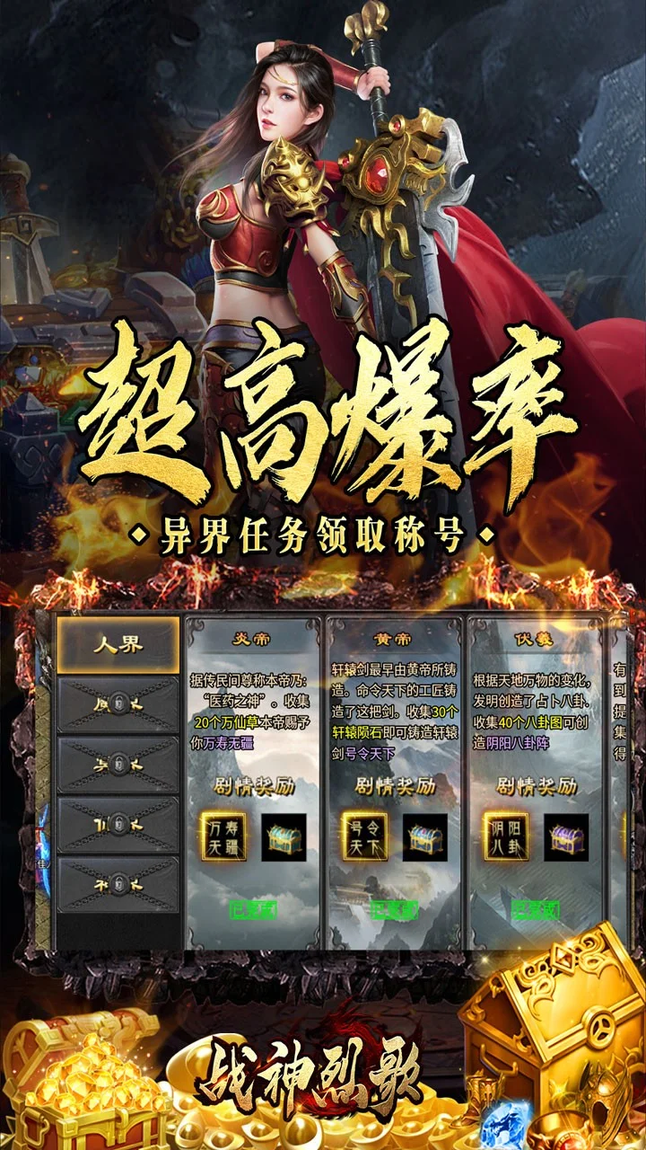 一款全新三职业复古传奇手游。每天登录送600代币,全服三折充值。结合了打金、专属、剧情、攻沙等玩法。玩法多,探索性强,上手简单,长久耐玩,战士、法师、道士三个经典职业,每个职业都有其独特的技能和战斗风格,满足不同玩家的需求。丰富的主线剧情任务引导玩家探索游戏世界,了解背后的故事,同时也能获得丰厚的经验和奖励。攻速三职业,职业平衡,战士无限刀,法师无限火,道士无限符,带你领略不一样的传奇,快快加入与兄弟们一起征战吧!