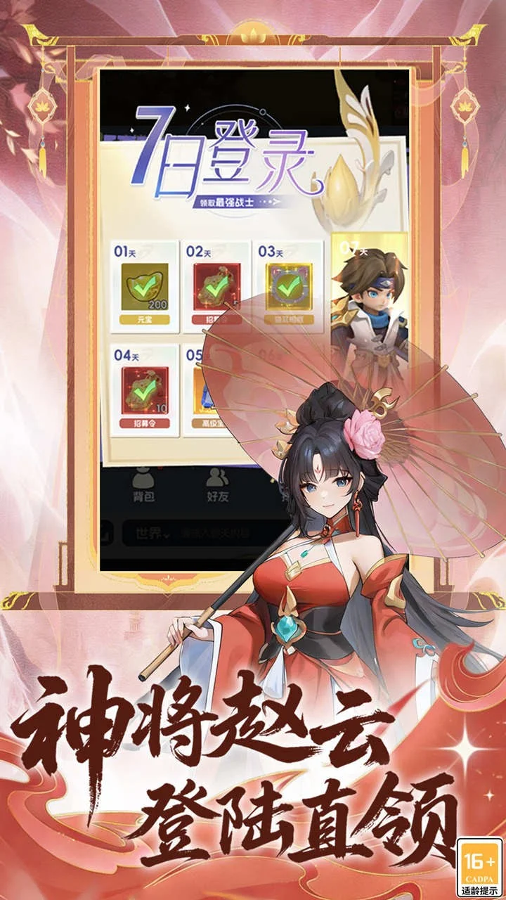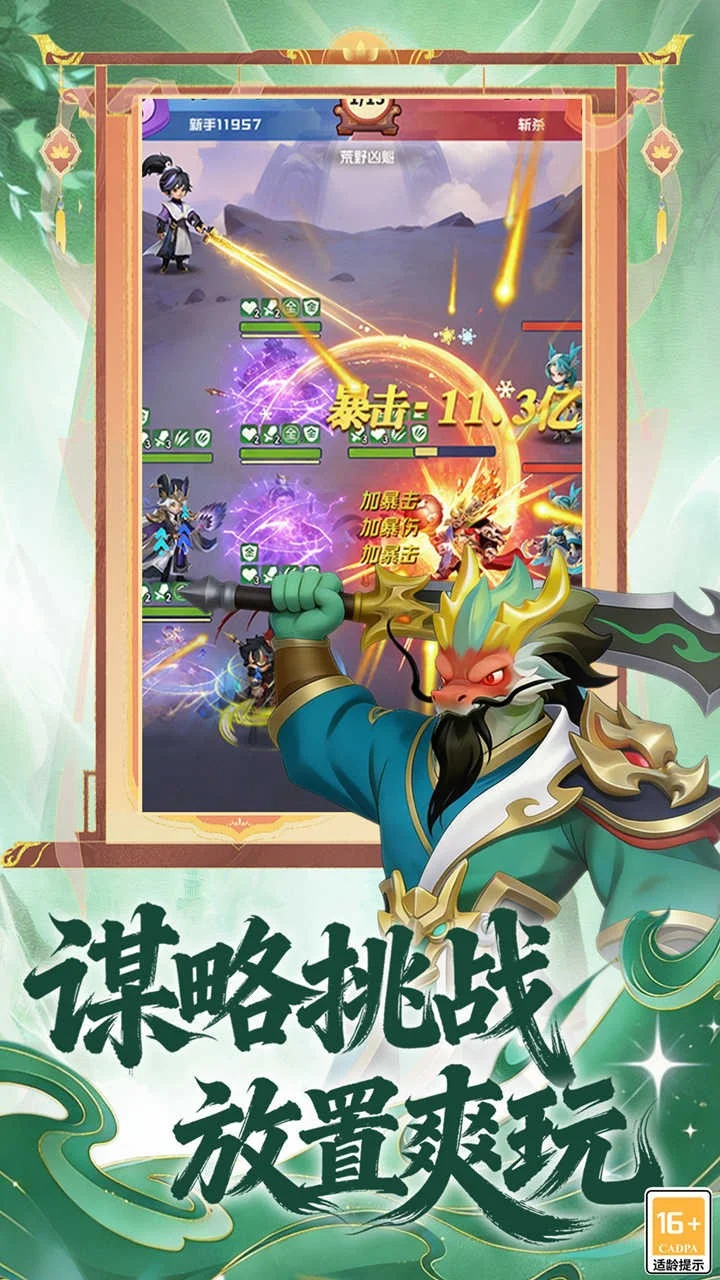 【《英雄守御》——指尖上的Q萌乱世】 轻松开局,萌将全收集! 穿越到墨水画般的Q萌三国世界,这里没有厚重的历史压力,只有上百位头顶包子脸、身披迷你甲的三国名将等待被你唤醒!赵云抱着奶瓶冲锋,诸葛亮摇着羽毛扇打瞌睡——每天登录即送十连抽,轻松组建你的“萌将天团”!