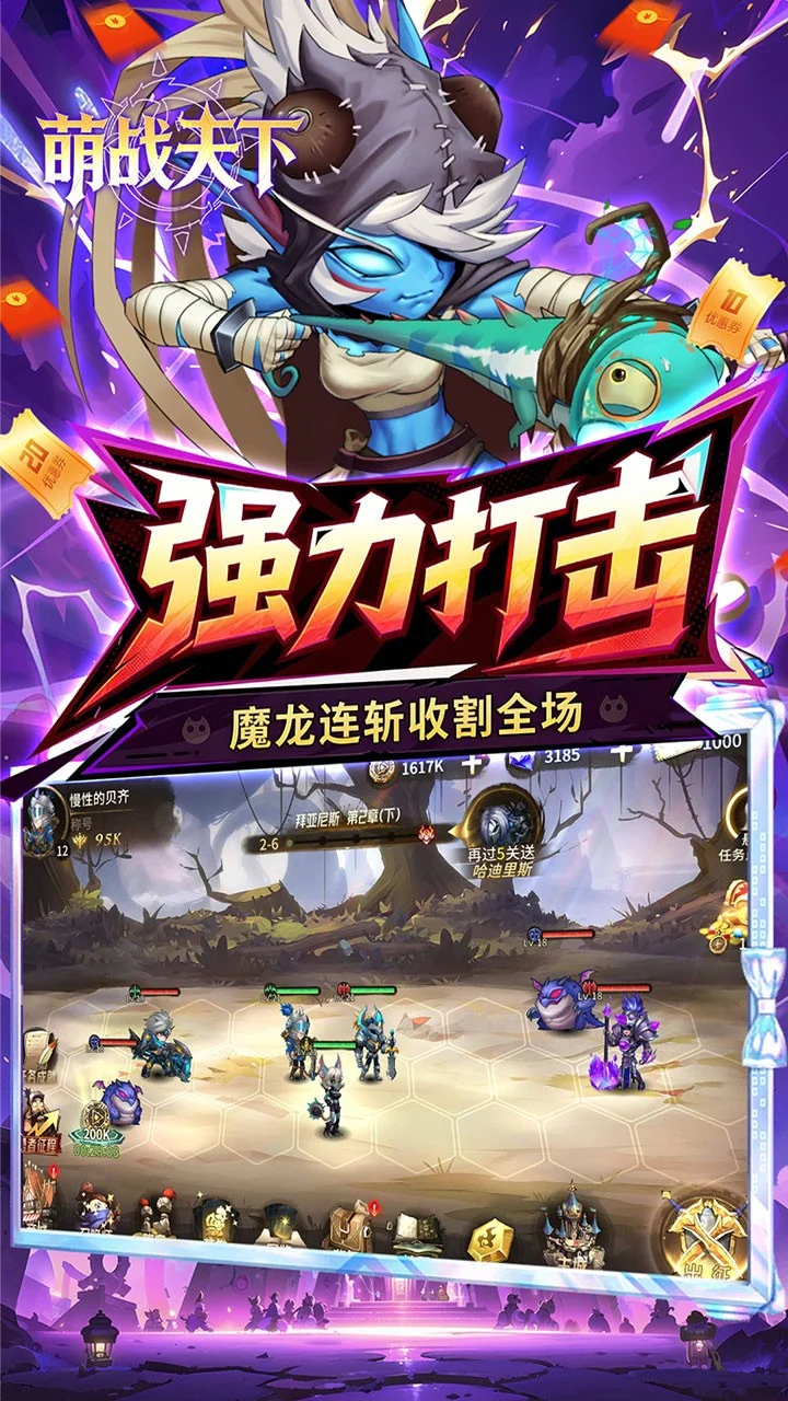 主打轻松护肝的策略战斗。游戏以 “拜亚尼斯大陆” 为舞台,玩家将化身召唤师,招募风格各异的英雄组成战队,通过六边形战棋布局搭配阵容,挑战章节关卡、暗影之塔等玩法。轻放置自走棋like玩法,离线也能收获资源,同时融合了英雄养成、神器搭配、阵容克制等策略元素,既适合碎片时间休闲,也能深度钻研阵容流派。界面画风偏童话奇幻,操作门槛低,新手福利充足,拜亚尼斯大陆等你来战!