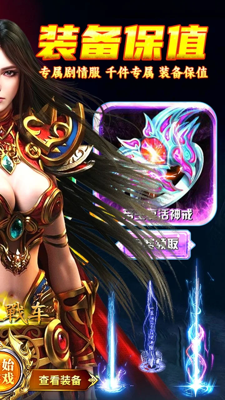 "专属剧情服,千件专属,装备保值,生态良好 上线送自动回收,自动拾取,半月弯刀 完成各种剧情可获得巨额充值奖励"