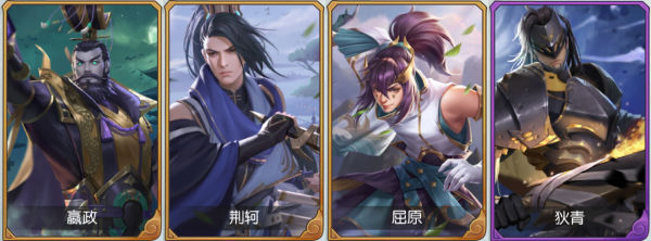 【嬴政】、【荆轲】、【屈原】、【狄青】