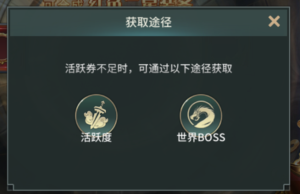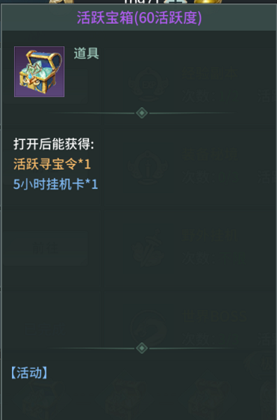 就是上面截图所示,这个寻宝名为活跃寻宝,顾名思义是用活跃券来寻宝的,活跃从何而来呢?