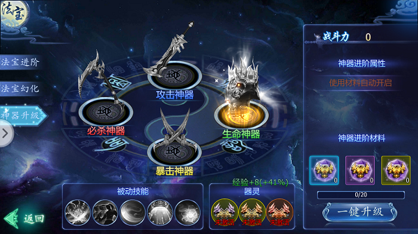 Ps:升级神器等级可以获得强力属性和解锁强力技能哦~