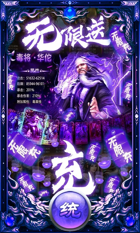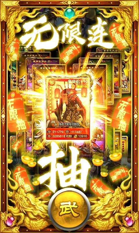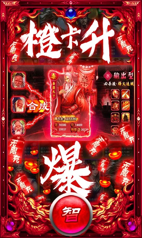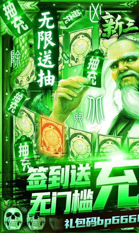 《新三国魂(无限送充抽)》暴爽打金震撼来袭!充值卡统统无门槛使用!上线立得30元充值卡,通关第二章再拿98元(根据熟练度约10~30分钟) ,通关关卡必爆充值卡!签到再送1800元,!通关1-8关开启福利大厅,输入礼包码bp8888立得50高级招募券,价值百元!还原经典玩法,通关可招降NPC武将,打赢就能轻松拿橙卡!橙卡统统可升红,橙卡无废将,全部都能养!每日大量福利活动,元宝、连抽拿不停!