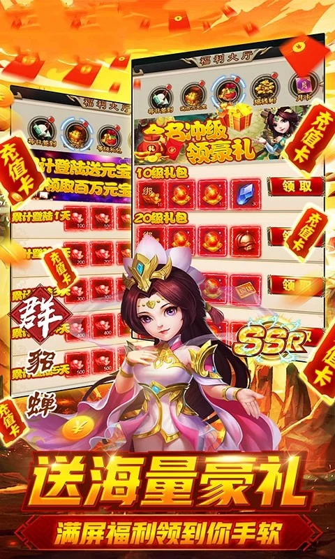 上线送满v,挂机轻松拿各种资源,gm权限自己领取海量道具和神将,升级更可以拿千元充值卡。《鏖战三国送千元版全民神将》是一款全新三国题材手游,乱世中,玩家可扮演主公的角色,招募三国时期的各种名将,来实现三国统一的梦想。这次你将在天命的感召下重回那个传奇年代,在海量人设Q萌、实力与颜值兼顾的武将陪伴下,颠覆性演绎东汉末年那英雄战场上的华丽篇章!