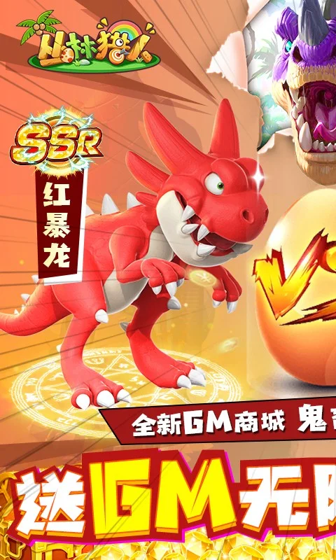 《丛林猎人-送万元充值》怀旧激萌的游戏画风,带你进入史前的石器部落,拿起石斧、捕获骑宠和野兽去战斗!上线送V10+百万金币,暴力通关直升V20,惊喜充值卡大礼包,神秘套装,还有永久尊贵VIP特权登录即送,天天登录送大额充值卡,连续登录还送豪华抽奖券,海量现金充值卡等你来抽取!游戏融合了休闲放置元素,从萌萌的宠物,奇幻的恐龙异兽中挑选成员组建你的小队,多种坐骑任你挑选,呆萌的巨型霸王龙,凶狠但软萌的剑齿虎,超多史前萌宠等着被捕获驯化,更有丰厚的上线壕礼送不停!重返石器大陆,开发烧脑策略套路,成为传说中的绝活哥!