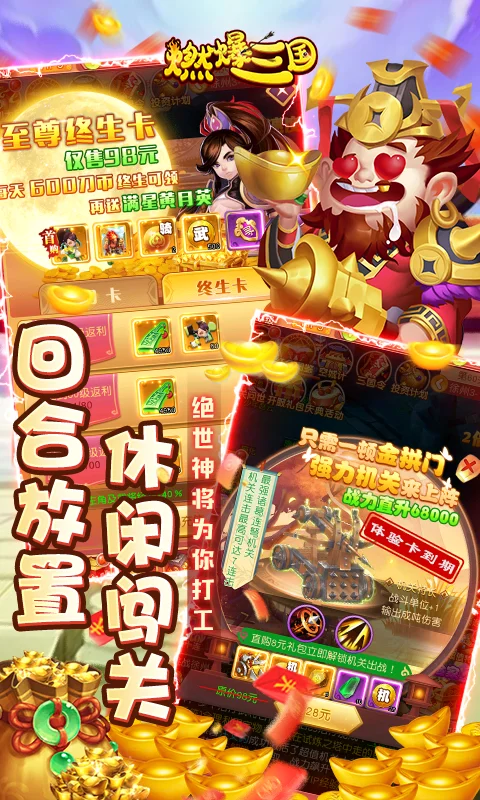 无双王者,燃爆觉醒 !《燃爆三国免费送VIP》来袭,这届三国真是不一样!纵横三国,超强武将伴您征战天下。唯美可爱的游戏画面,生动还原了东汉末年风起云涌的三国时代。武将、红颜女将、文臣谋士、蛮族将领、君主首领等多种多样的出战养成,打造自己的军团攻破城池、击溃伏兵!同时还拥有世界BOSS、军团争霸等多样式的社交系统。快来和上亿三国文化爱好者一起战斗!
