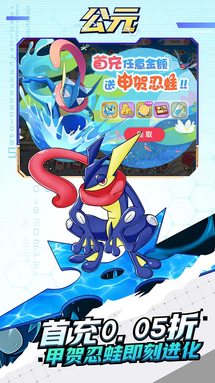 礼,首日送梦幻,3日送耿鬼7日送固拉多!3、充值0.05折,首充任意金额即可领取甲贺忍蛙