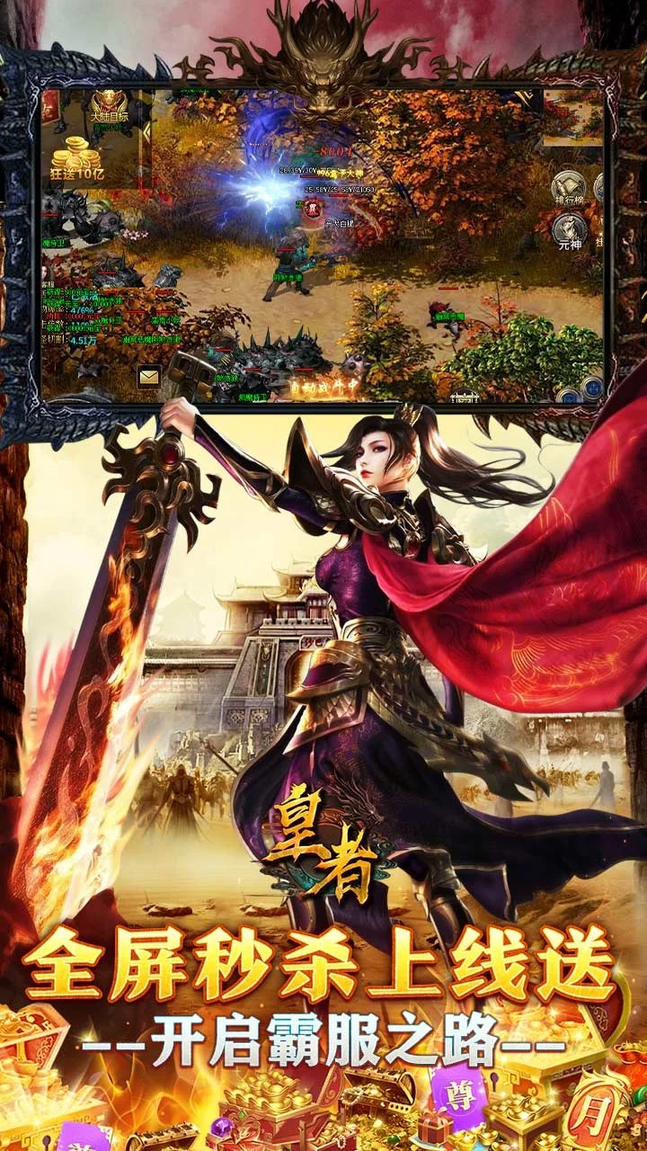 上线就送极品神装,特殊,自动捡物,自动回收,超大背包和仓库。超大直购币个人奖池,杀怪抽奖两不误,下个天命之子就是你了。炫酷时装,神装,打怪各种爆爆爆爆爆