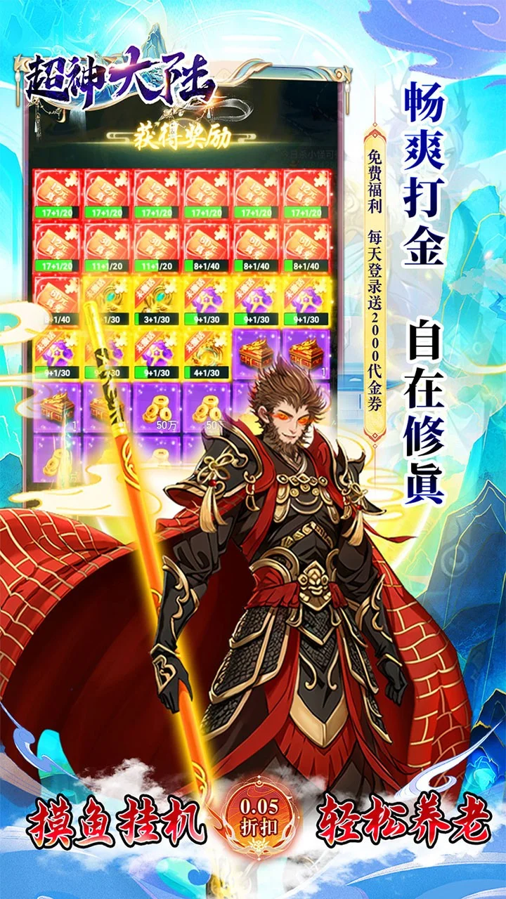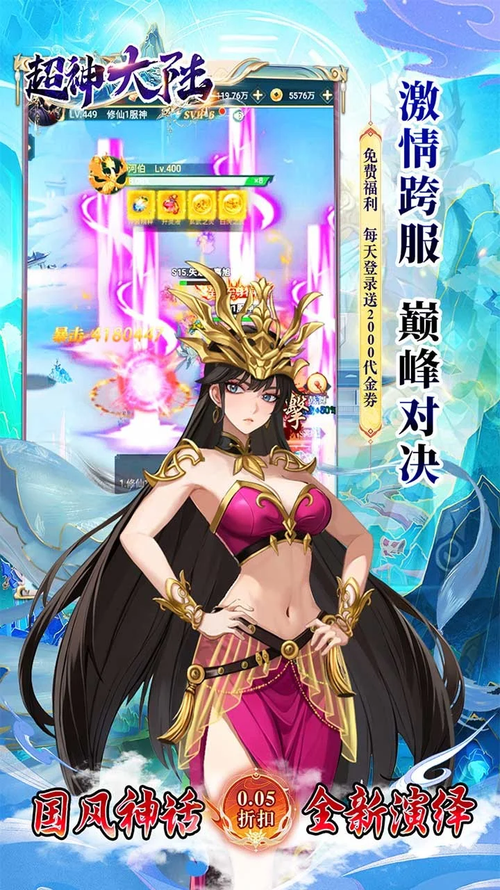御剑乘风来,云海踏歌行。《超神大陆》是一款国风神话题材RPG放置游戏,在这片大陆里你可以沉浸式体验一个轻国风的神话世界,感受中国古代神话与修仙文化的完美融合,更有超多炫酷萌宠伴你征战仙途。玩法轻松福利拉满,摸鱼挂机不内卷,从一介凡人到万仙之尊,你的传奇,由你书写!