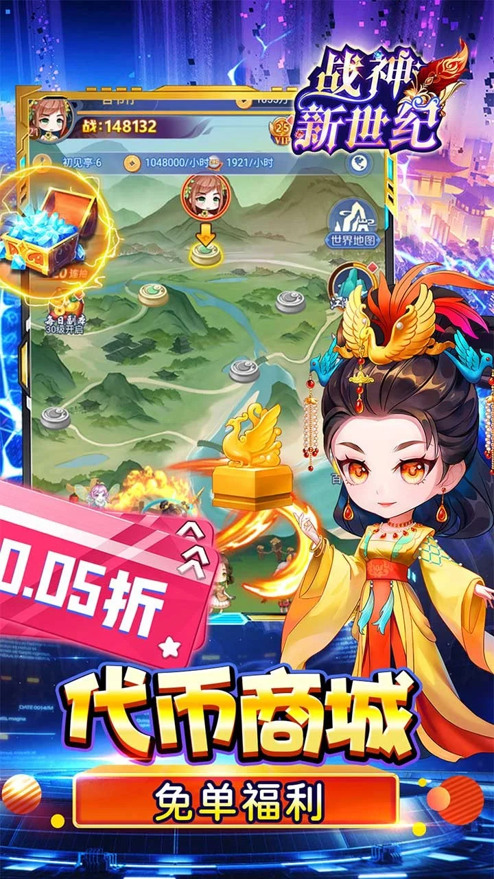 《战神新世纪》是一款Q版国风题材的卡牌+塔防回合制游戏。你将化身主公,带领女英雄们征战天下!游戏保留了经典塔防游戏的精髓,烧脑策略秀操作,在传统塔防的基础上,结合了策略、培养、战斗,每个武将也都各具特色。趣味的玩法,休闲的画风,简单的操作,原创“满屏技能释放”,带来燃尽十足的战斗快感,让战斗在你的指尖生动重现。