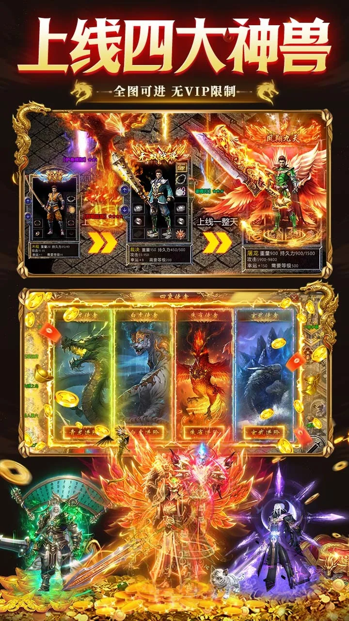 九州霸业(无限资源真充版)是一款经典复古传奇手游,散人追梦,超多装备!开局送骷髅统领时装、送无限灵符、无限元宝、自动拾物、自动回收、自动经验等特权!每天上线送200代币,上百张地图精彩纷呈,等你来战!游戏中还有大乱斗、血战魔龙等活动,集齐你的兄弟一起血战!超多奖励等你拿!