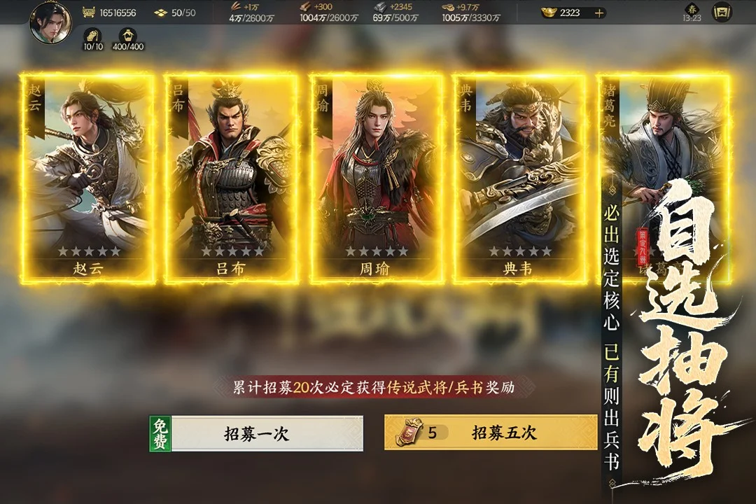 游戏不卖资源不卖加速不卖VIP不卖数值。公测S1赛季期间,主公可通过游戏内活动最高获得511抽、14800元宝和多个自选武将和兵书技术宝箱,而且游戏还支持定向抽核心卡,主公可轻松组建自己想要的阵容!此外通过公测活动,还可报销月卡、赛季充值返还、洛阳竞速单盟赢最高20万(盟主可获4万)、每日福袋抽周边等丰富好礼,福利天天发不停。