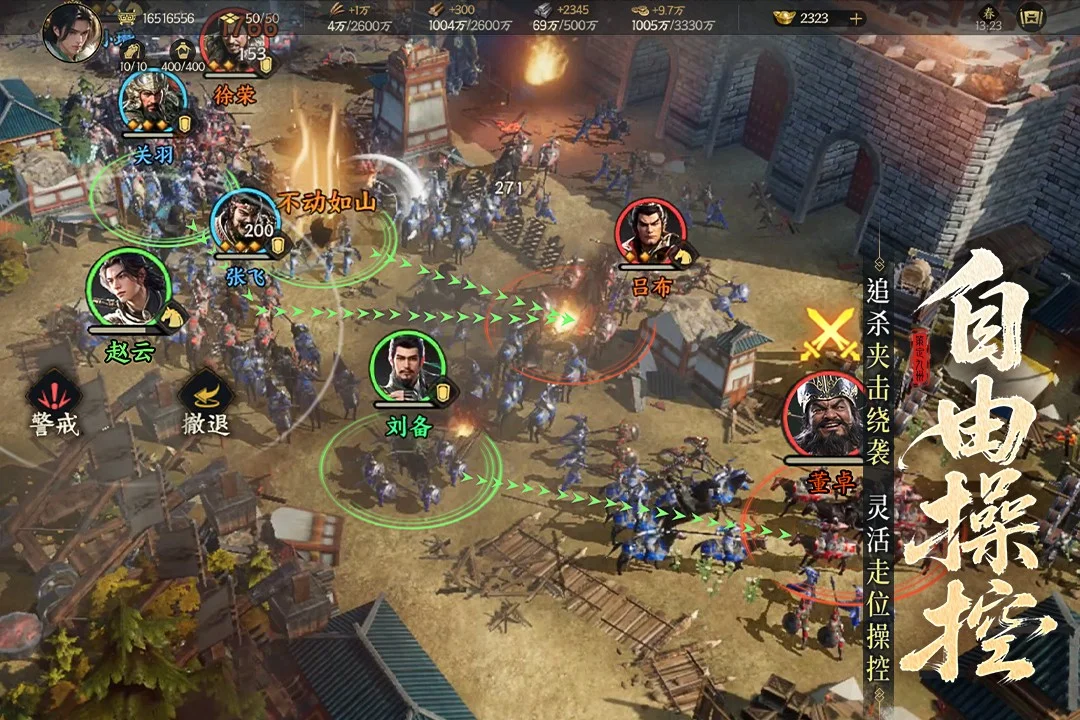 正版三国战中操控策略手游《三国群英传:策定九州》,以真RTS操作为核心特色,支持战中自由操控。主公们可在高地、树林、桥梁、河流、峡谷等可作战地形上,充分利用盾阻挡弓远射骑侧切的兵种特性,通过自由拖拽部队实时调整战术,在瞬息万变的战场上精准指挥行军路线、集火目标及迂回突袭,尽情享受在真实战场上即时操控战斗的RTS乐趣。