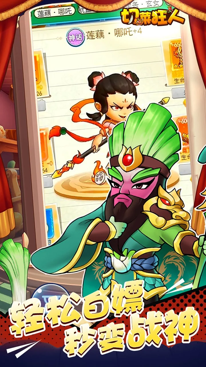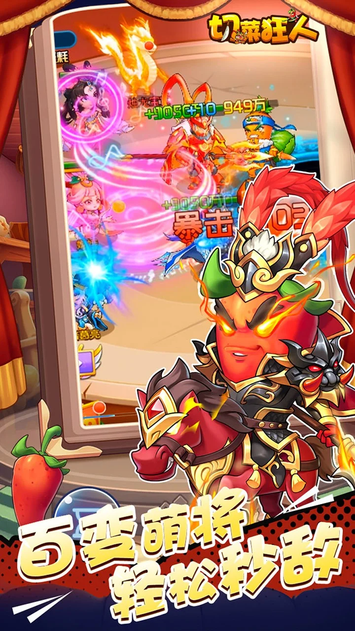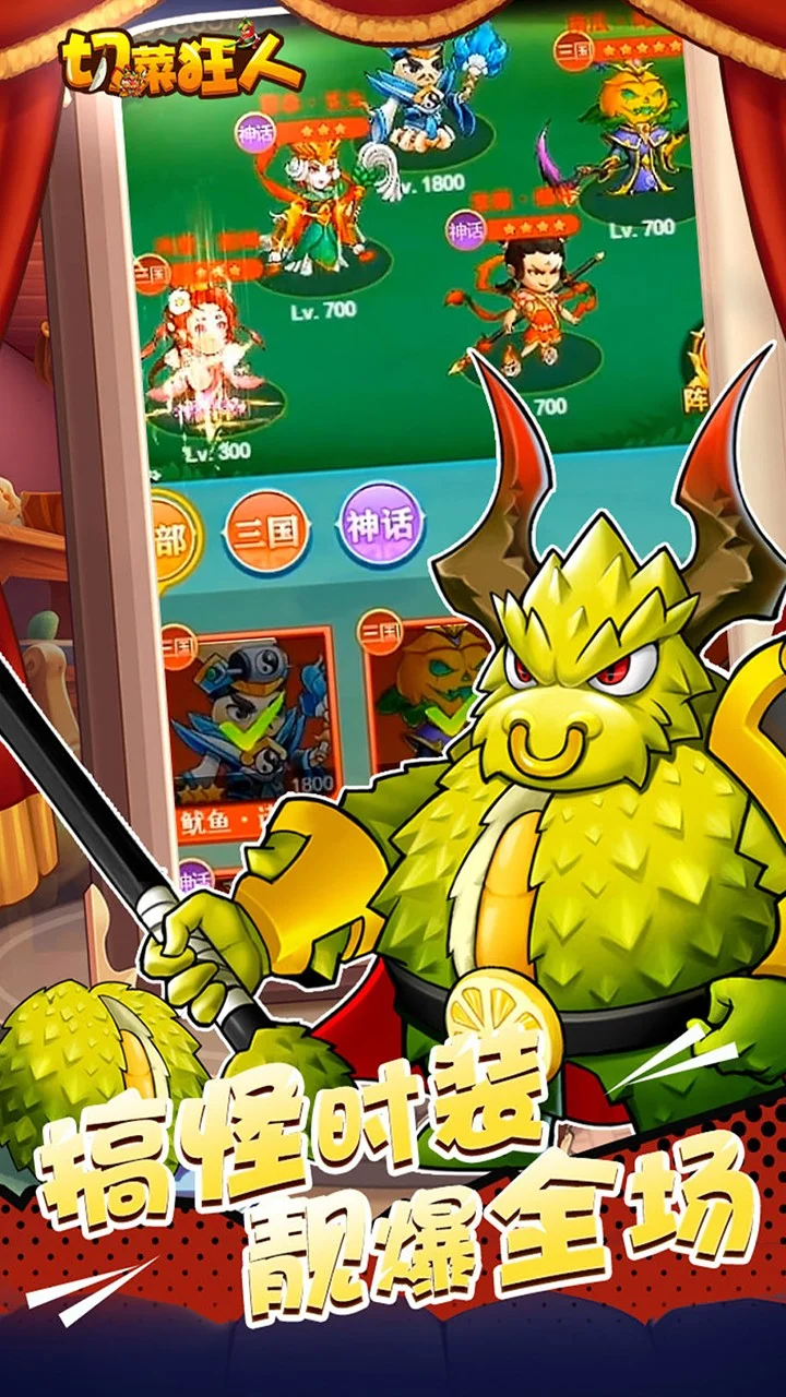 《切菜狂人》是一款超上头的Q版休闲挂机游戏。水果蔬菜混搭,形象搞怪萌态百变,新英雄新玩法,悟空、哪吒、八戒、赵云、关羽、吕布应有尽有,多样英雄任意搭配阵 容,轻松闯关,还有大战僵尸,爬塔等趣味玩法,欢乐集结,畅玩不腻!创角648充值卡,悟空师徒与你一同过关斩将,绝世厨神竞技,食神之塔,艰险重重,你将勇往直行, 击败强大敌人!